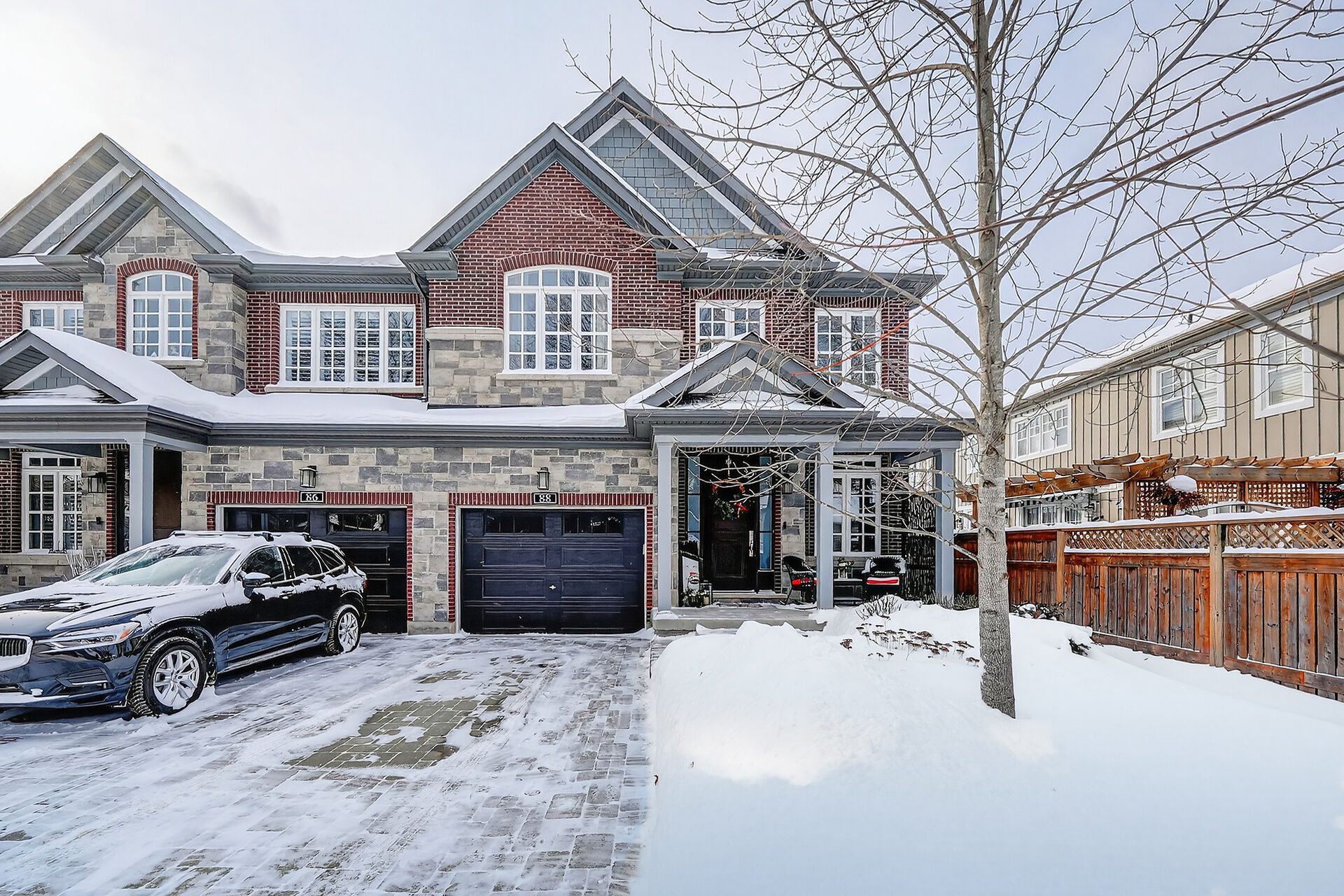 This stylish end unit townhome has been conscientiously designed from top to bottom. Custom built in 2021, this spacious home offers a functional layout and pristine finishes. Oversized doors, ample light and soaring ceilings make the front entrance appealing. An open concept kitchen and living space offer endless light through the rear facing windows that overlook the manicured yard beyond. A gas fireplace, wide plank satin hardwoods and a neutral colour palette make the space move-in ready. An expansive central staircase with custom spindles leads to the second storey with 2 bedrooms both with private ensuite. The principal bedroom is spacious and offers a walk-in closet, and a stylish principal bath with double vanity and glass shower enclosure. Laundry is conveniently located on the second level, and the addition of a utility sink was thoughtfully added to the layout for functionality. An additional 2 piece guest bathroom is discretely tucked away off the lower level landing, with an additional full bath on the lower level. In addition to cold storage and a large family room, the lower level offers a flexible layout for the hobbyist or entertainer. With a tidy single car garage and ample driveway parking, this low maintenance home offers close proximity to the very best amenities that Niagara-on-the-Lake has to offer!